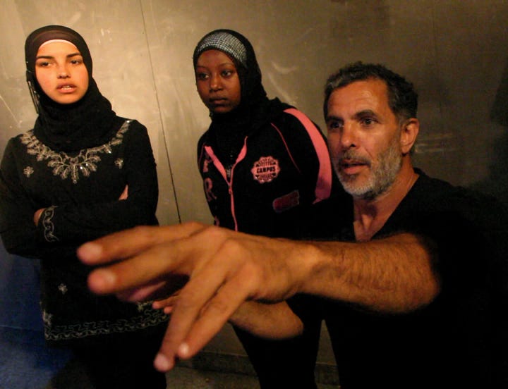 The threats to us, that we brushed off with some sarcasm, had a lot more substance for Juliano, and he knew it. I heard his low voice often ruminate on what he called “double oppression.” The kids jumping around the theater, I realized, really faced that: the Israeli-Palestinian conflict on the one side, but also the strict bounds of their fathers and mothers on the other — a two-layered prison for their bodies and minds, and Juliano’s theater was here to free them from both. He never looked around his back, but it was obvious there were people in this town waiting for his fall. I discovered a video where he predicts his own death, an eerily accurate description.